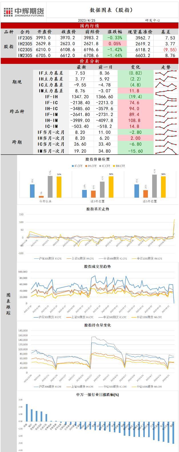 标题:中辉期货股指日报20230425:市场情绪谨慎,股指持续回调