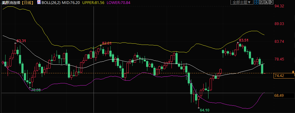 美原油交投于74.42美元/桶附近;油价周三大跌了近4%,延续了前一交易日的大幅跌势,尽管此前报告显示美国原油库存下降幅度超过预期,但对世界最大经济体的衰退担忧与日俱增。