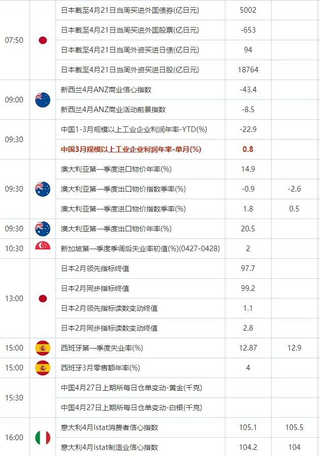 后续及时更新的财历数据请关注:【汇通财经4月27日财经日历】