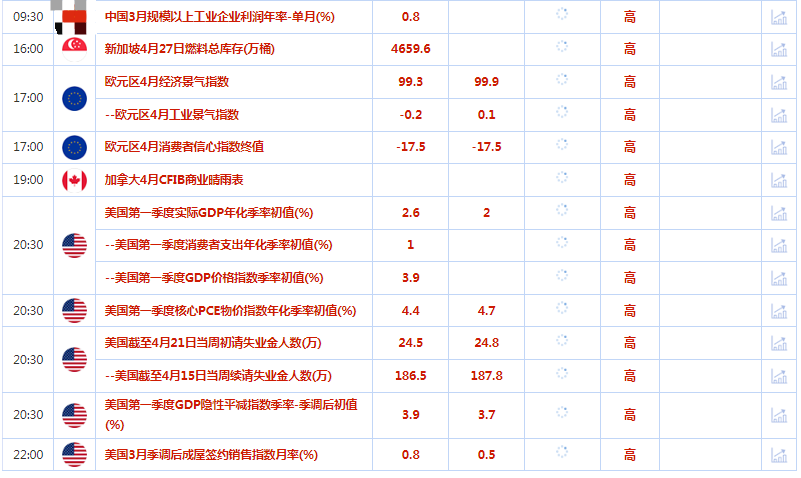 交易员现在关注的是周四公布的美国一季度GDP数据,随后是周五公布的核心个人消费支出物价指数,这是美联储青睐的通胀指标。