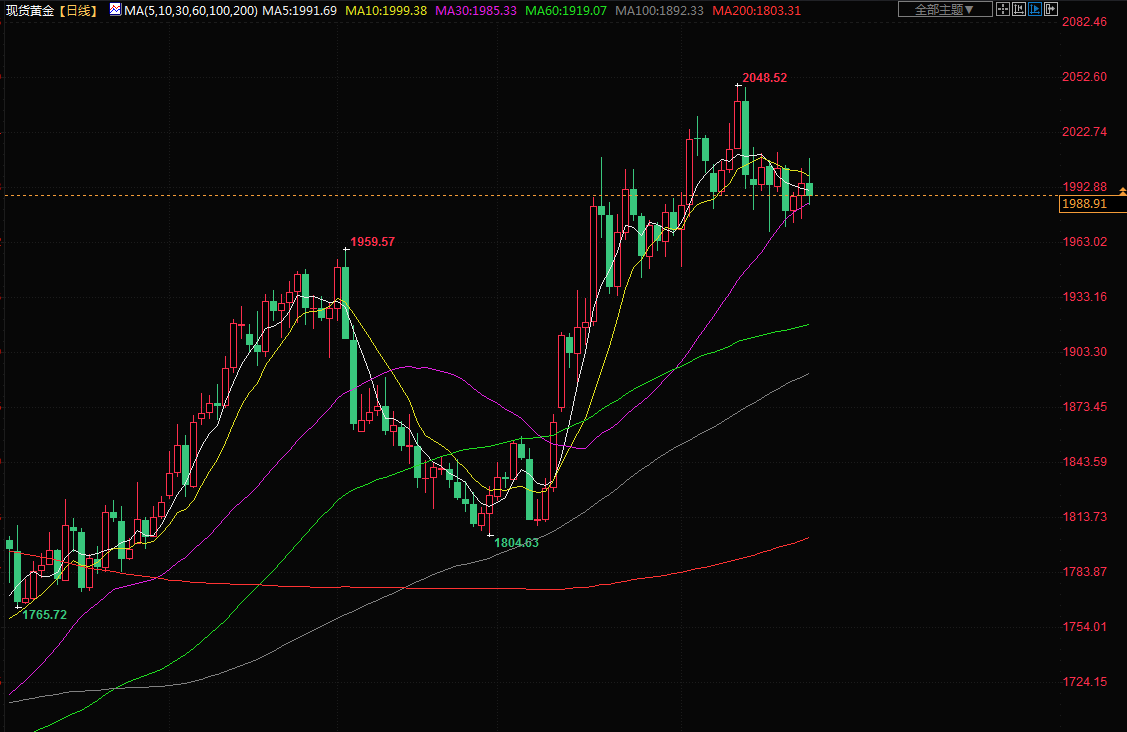 周三黄金回落,因收益率回升,焦点回到即将公布的经济数据上,此前在美国银行业动荡引发新担忧的刺激下,黄金短暂突破了2000美元。