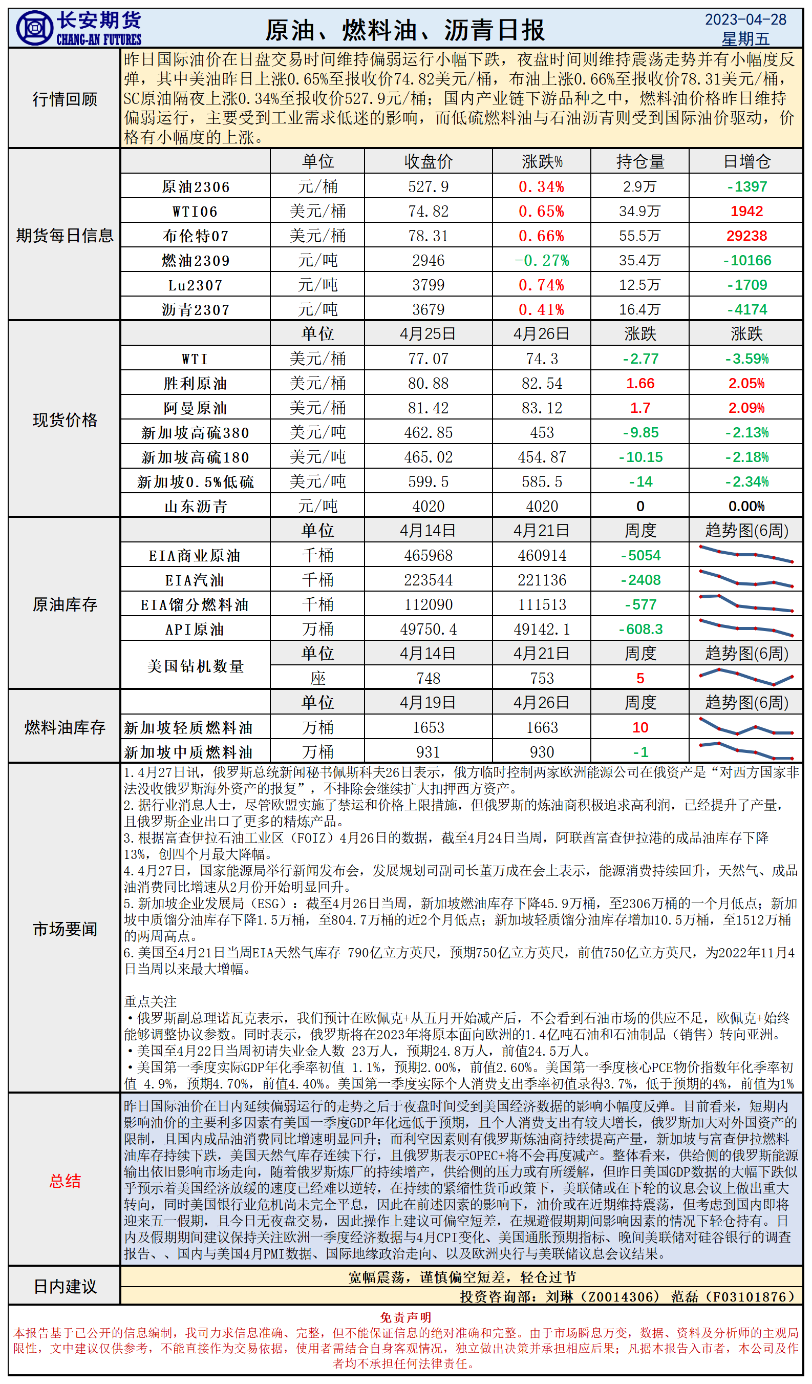 标题:长安期货4月28日原油报告:经济放缓供需紧张,低位震荡建议轻仓过节