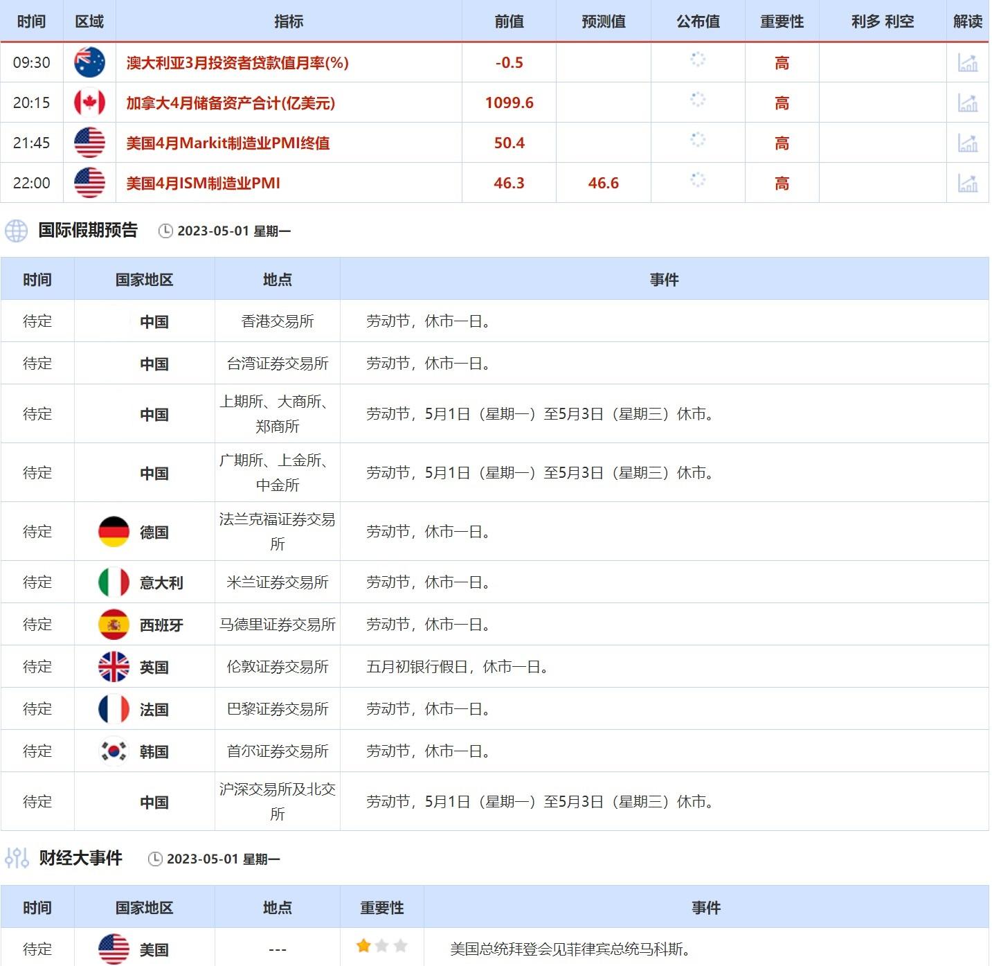 周一需关注的重点数据和大事