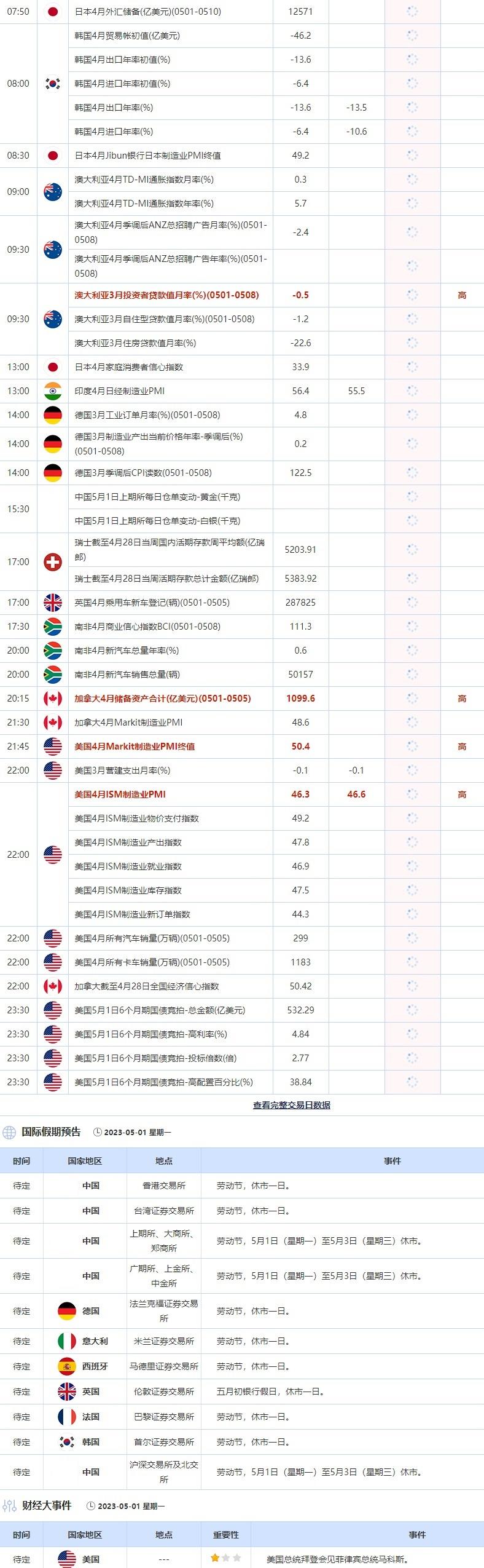 后续及时更新的财历数据请关注:【汇通财经5月1日财经日历】