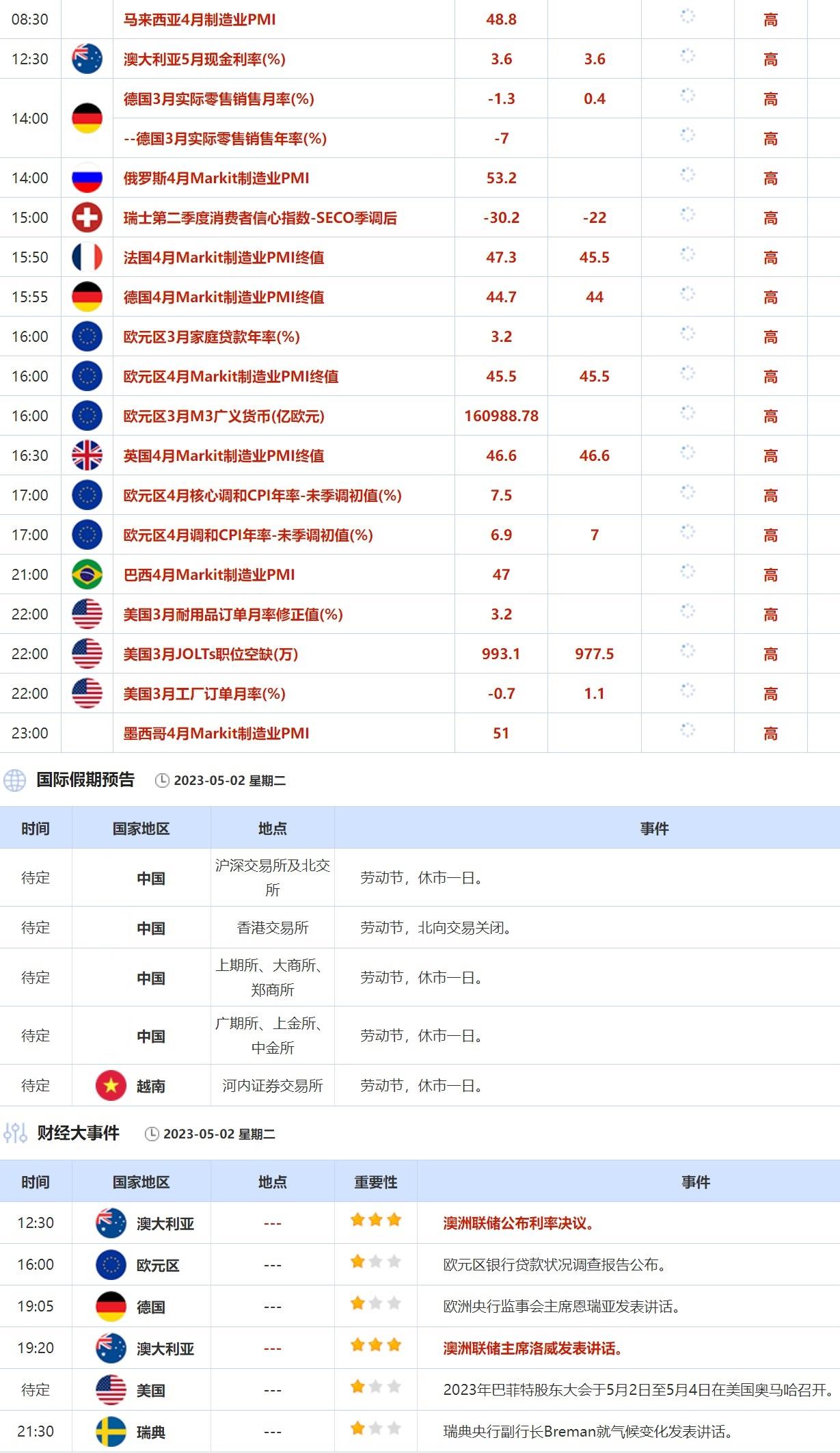 后续及时更新的财历数据请关注:【汇通网5月2日财经日历】