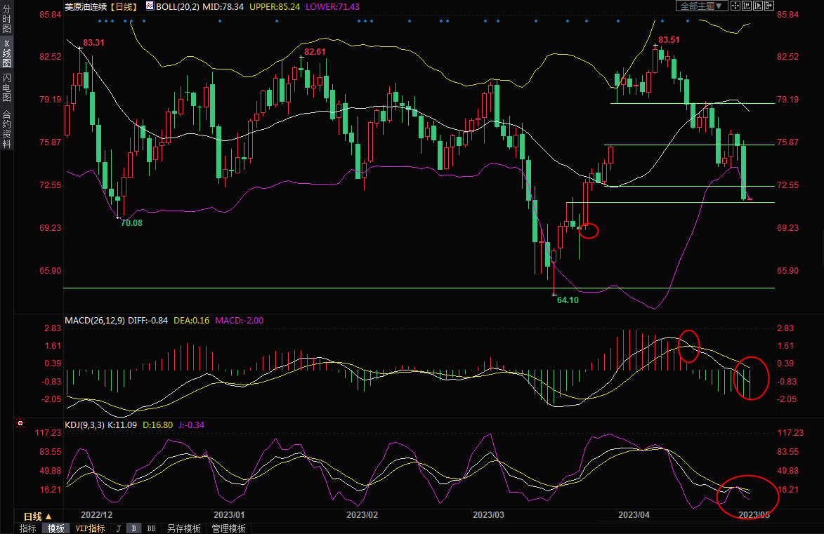 美原油窄幅震荡,目前交投于71.51美元/桶附近。隔夜油价重挫约5%,至五周最低,受累于经济担忧,美国政府和国会正在讨论如何避免债务违约,同时投资者为本周进一步加息做准备,市场对银行业危机和经济衰退的担忧情绪也再度升温。