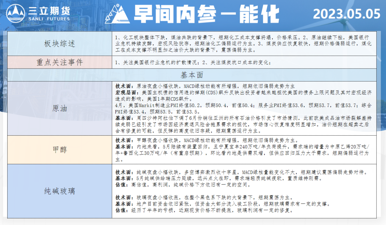 标题:三立期货5月5日早间内参——能化