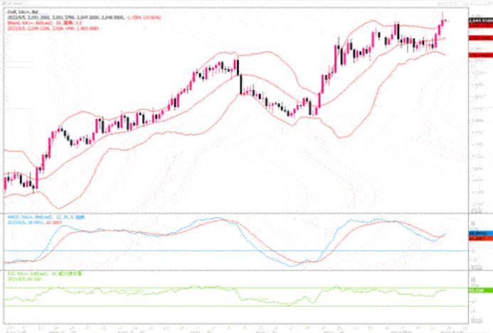 日线图看,昨日金价小幅延续走高录得带阳线实体的K线形态, MACD指标双线也发出金叉变盘信号,但并未能跟上金价进行破高,后市有形成顶背离的风险,短时间内需要留意5日均线的支撑力度。从