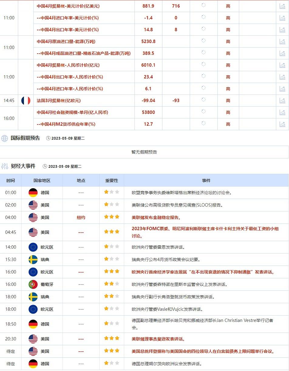 贷款状况调查是本周一系列受到密切关注的美国经济数据中的第一个。周三公布的通胀数据可能为美联储是否必须采取更多措施来控制通胀提供线索。交易员仍在关注国会山的债务上限僵局,美国财长警告说,到6月1日政府就可能无法偿还债务。