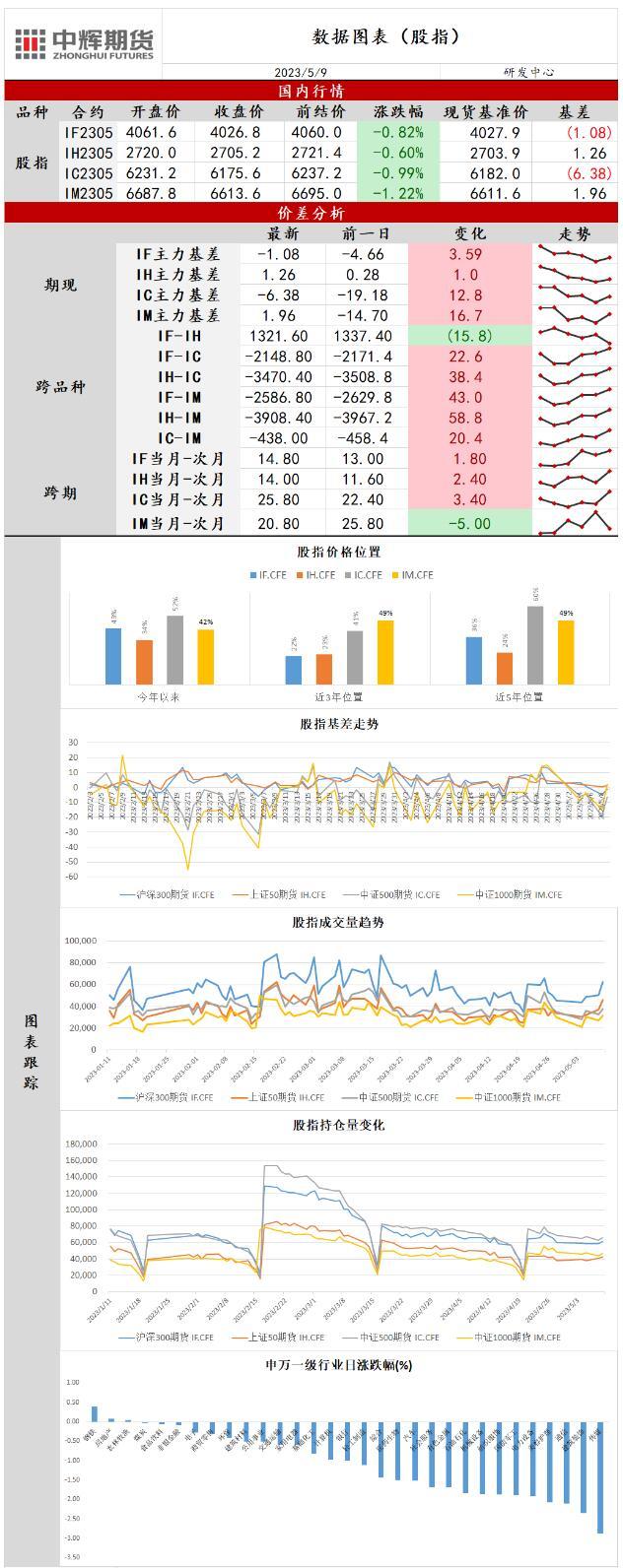 标题:中辉期货股指日报20230509:市场分化加剧,股指冲高回落