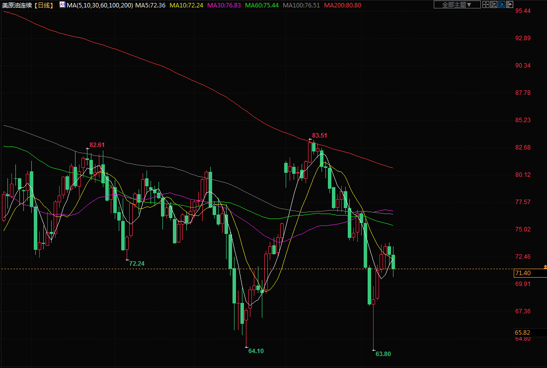 商品收盘情况:布伦特原油期货下跌1.9%,报收于每桶74.98美元,而美国原油 下跌2.3%,报收于70.87美元。美国期金收跌0.8%,结算价报2020.50美元。