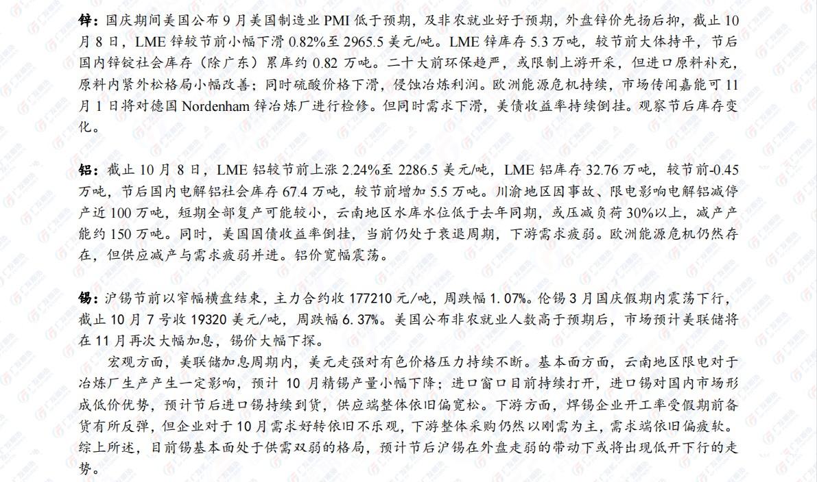 标题:广发期货国庆假期行情回顾及节后展望:黄金仍可能下跌,生猪保持多头思维