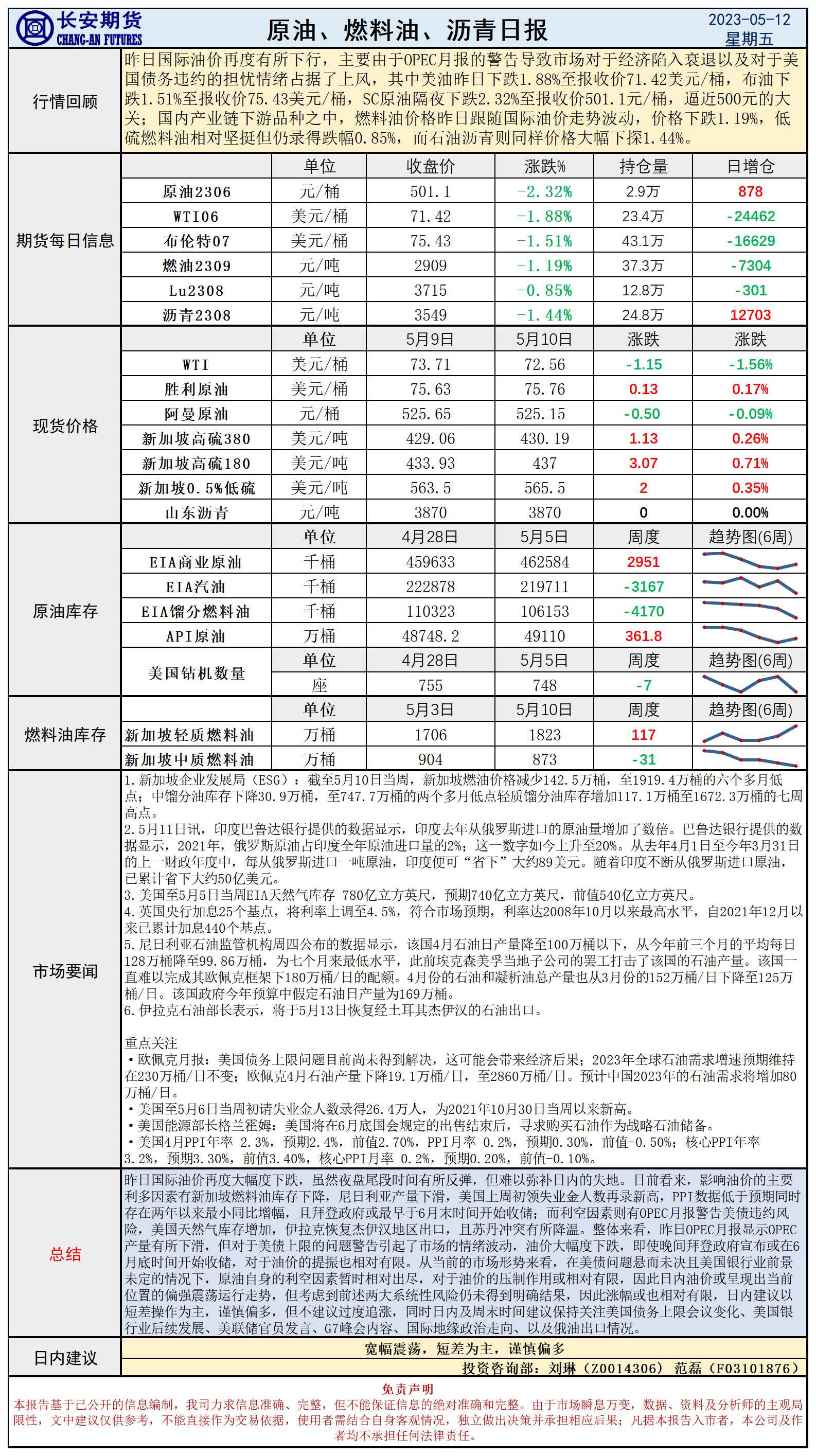 标题:长安期货5月12日原油日报:OPEC警告美债危机,原油维持宽幅震荡