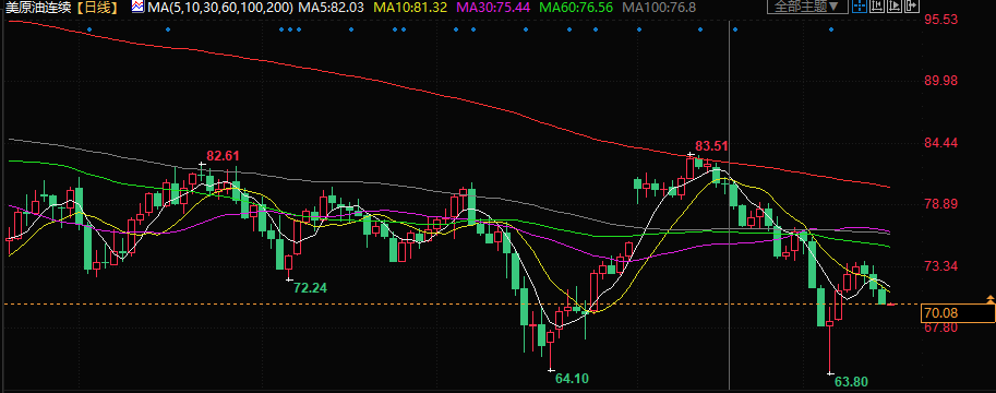 美原油交投于70美元/桶附近;油价上周五收低近2%,且周线连续第三周下跌,市场在供应担忧与对经济忧虑重现之间权衡。同时,美国债务上限问题增加市场不确定风险,拖累油价。