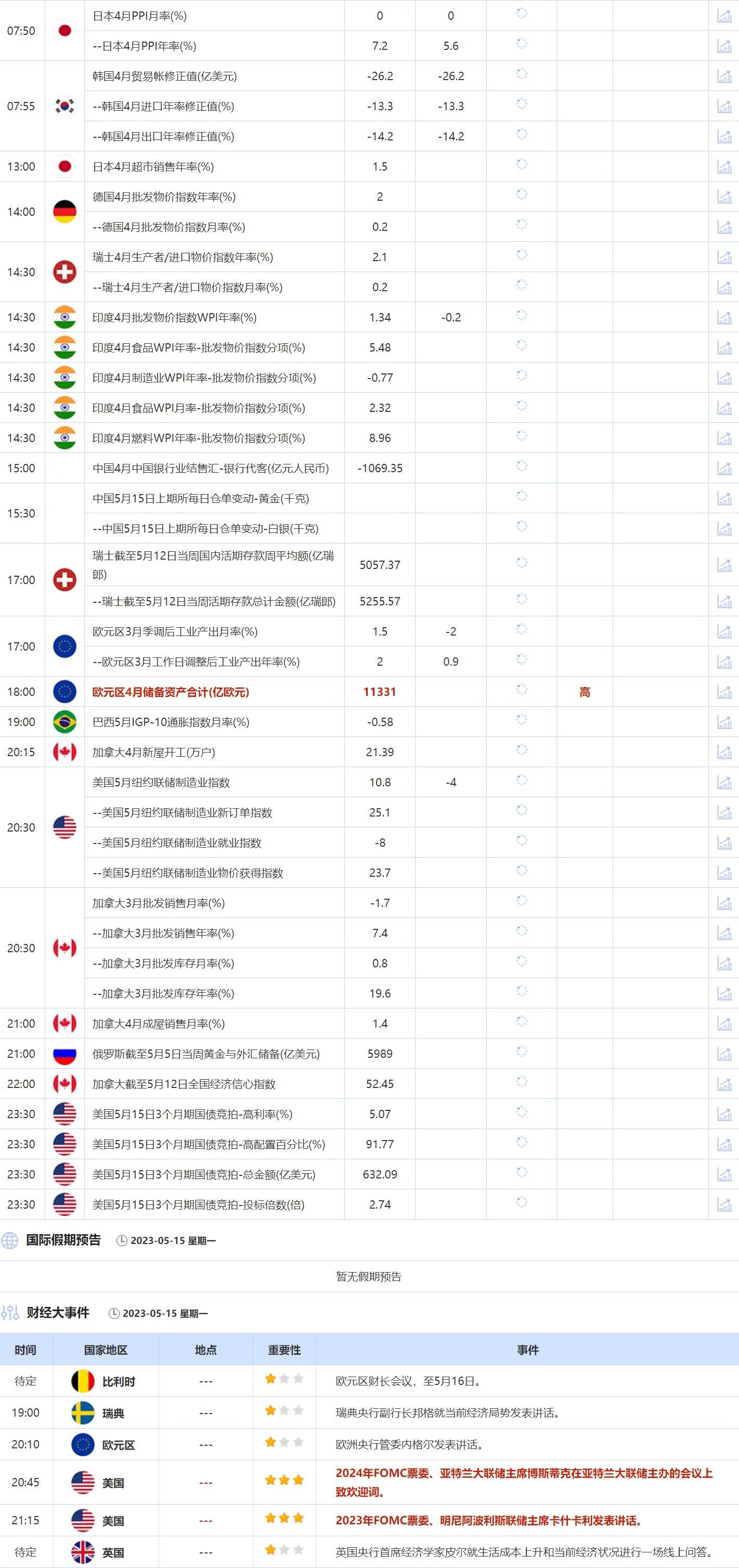 后续及时更新的财历数据请关注:【汇通网5月15日财经日历】