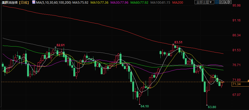 美原油交投于71.32美元/桶附近,油价周一在连跌三日后每桶上涨近2%,受助于加拿大和其他地区供应将收紧的前景,以及美国宣布为紧急战略石油储备回购300万桶原油的计划,但对经济衰退的担忧继续令油市承压。