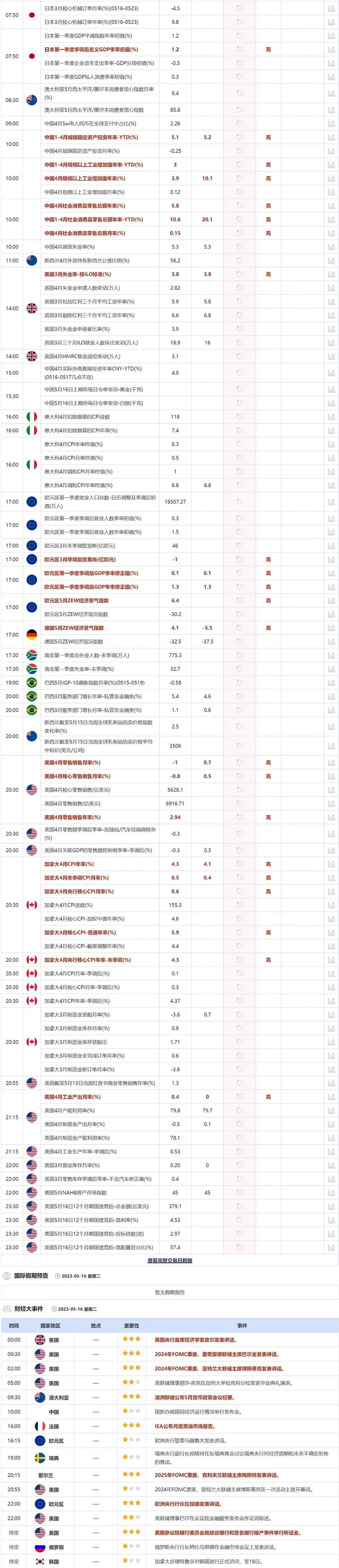 后续及时更新的财历数据请关注:【汇通财经5月16日财经日历】