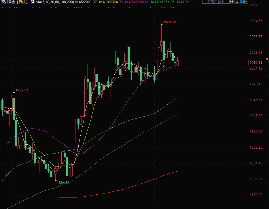商品收盘情况:美国期金结算价报2022.70美元,上涨0.1%。