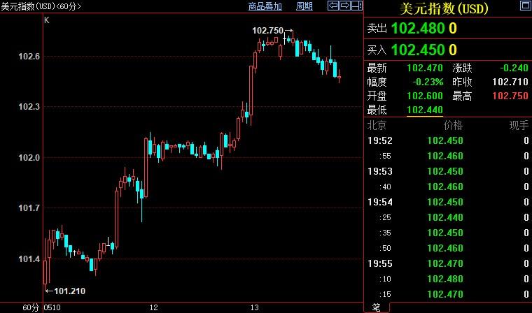 美元指数下跌0.23%至102.465;10年期美债收益率上涨2.6个基点至3.489%。