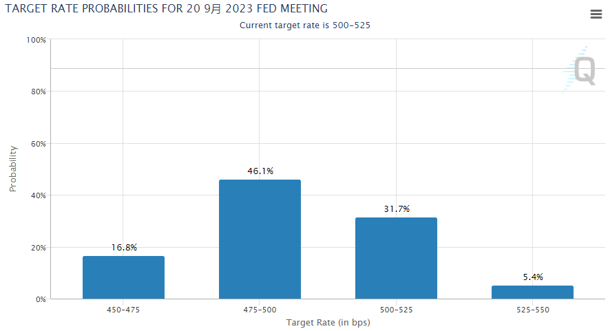 根据CME的“联储观察”工具,市场预计美联储6月将利率维持在当前水平的可能性接近80%,并且有可能最早从9月开始降息——可能性超过60%。