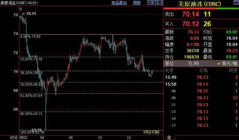 小时图上,NYMEX原油重新回到70.02美元美元,并有望进一步反弹至71.50美元。它们分别是63.79美元-73.88美元反弹区间的38.2%斐波那契回档位和23.6%斐波那契回档位。