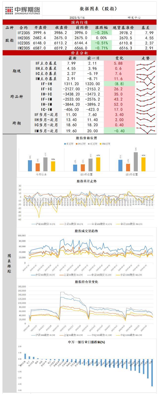 标题:中辉期货股指日报20230516:经济数据表现不及预期,股指低位震荡