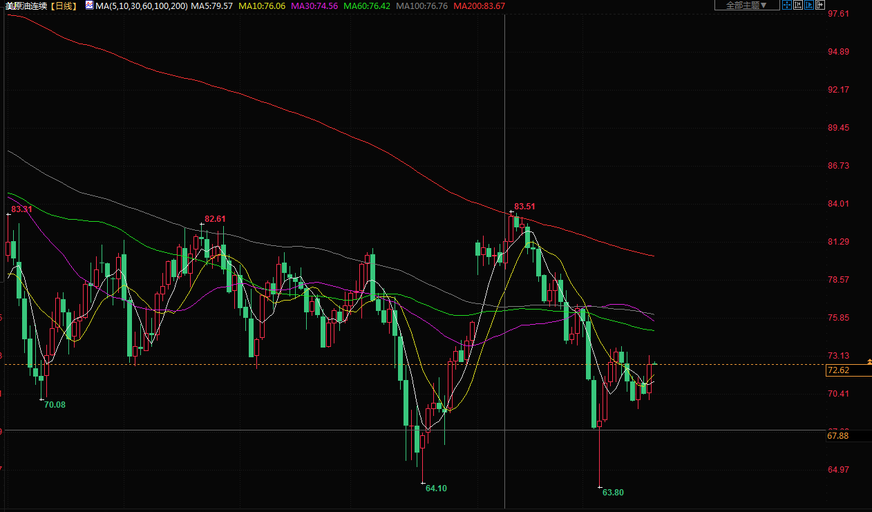 美原油交投于72.66美元/桶附近;油价周三上涨超3%,美股创近两周最大百分比涨幅,对石油需求和美国债务上限谈判的乐观情绪盖过了对供应充足的担忧。