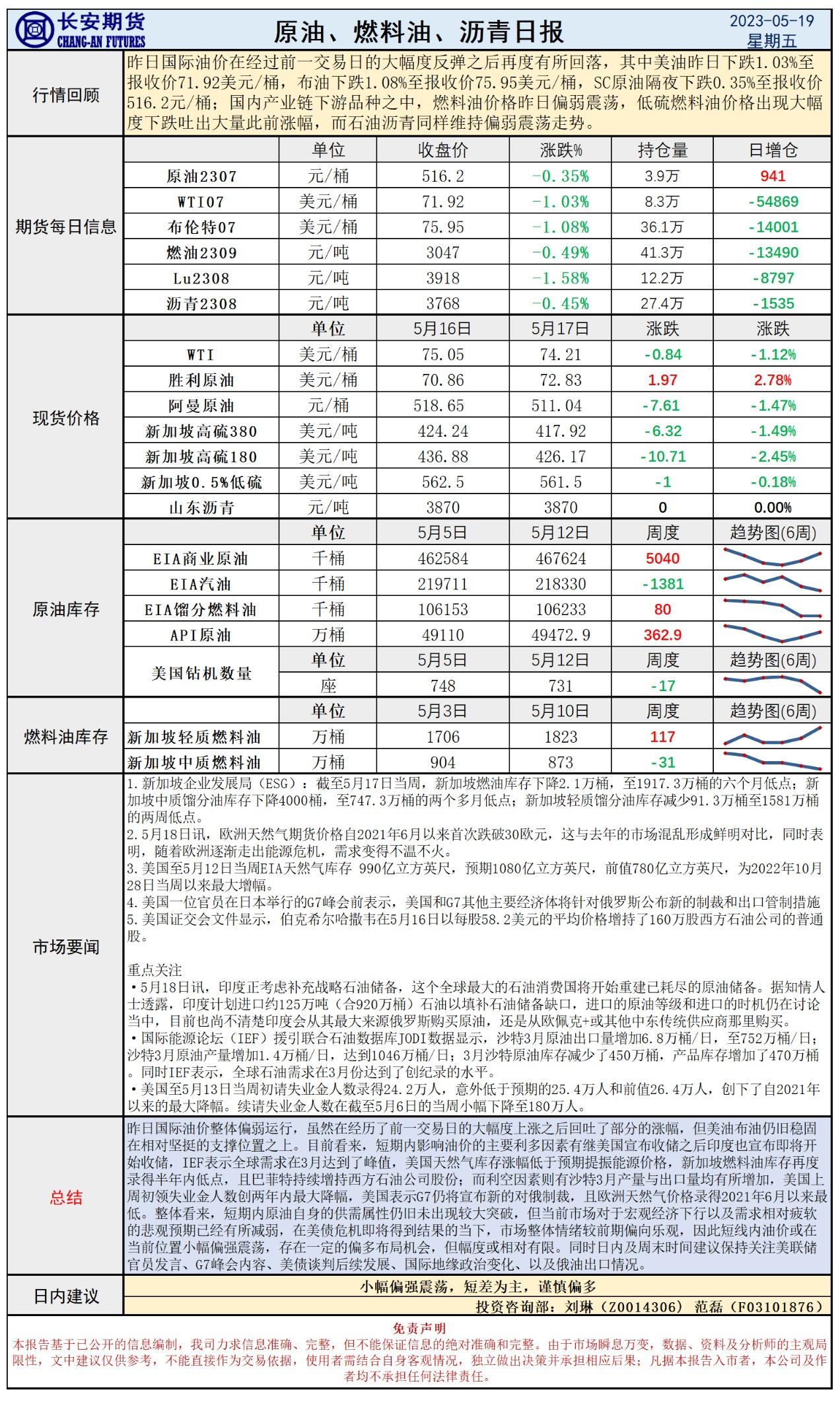 标题:长安期货5月18日原油早评:G7持续制裁全球需求回暖,油价或维持偏强震荡