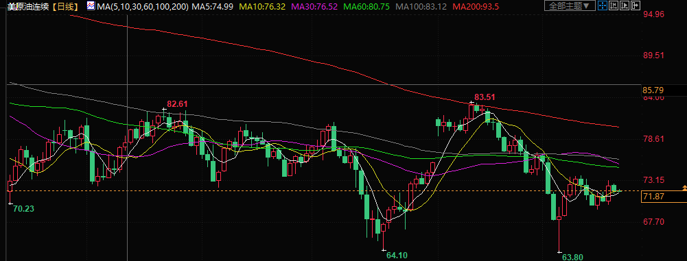 美原油交投于71.87美元/桶附近;油价周四下跌约1%,美国强劲的经济数据推动美元触及两个月最高,人们愈发预期美联储可能在6月再次加息。