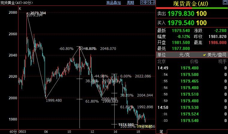 现货黄金创4月21日以来新低至1972.07美元/盎司。