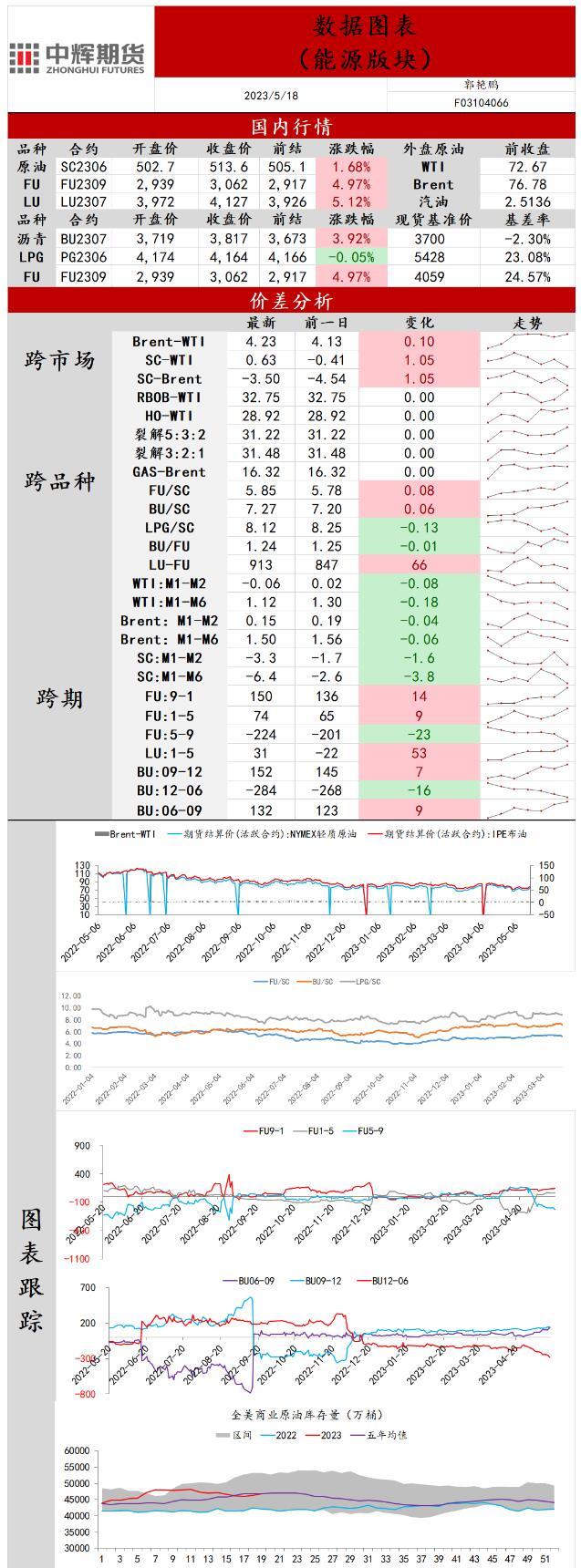 标题:中辉期货原油日报20230518:原油维持区间震荡