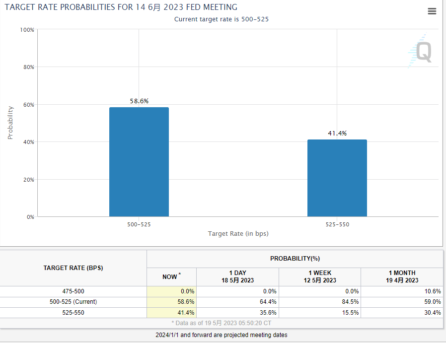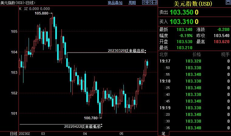 而一些美联储官员继续发表鹰派言论,美联储下月加息的可能性再次提升,令美元受到提振。货币市场目前预计,美联储6月再加息25个基点的概率为41.4%,而一周前仅为15.5%。交易员还下调了对美联储今年晚些时候降息的预期。