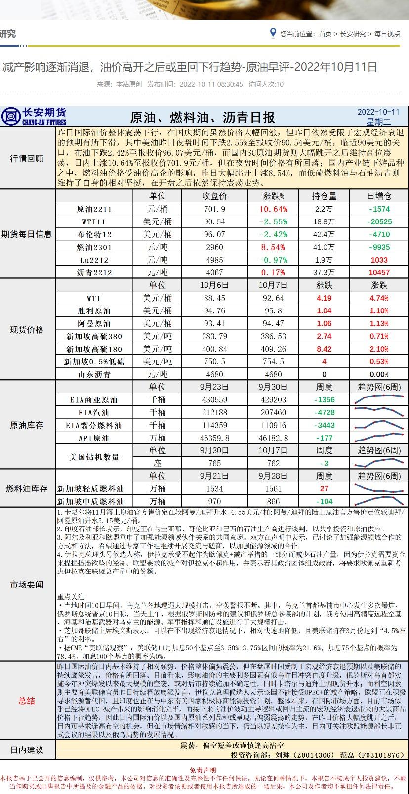 标题:长安期货原油早评:油价高开之后或重回下行趋势,建议偏空短差或谨慎逢高沽空