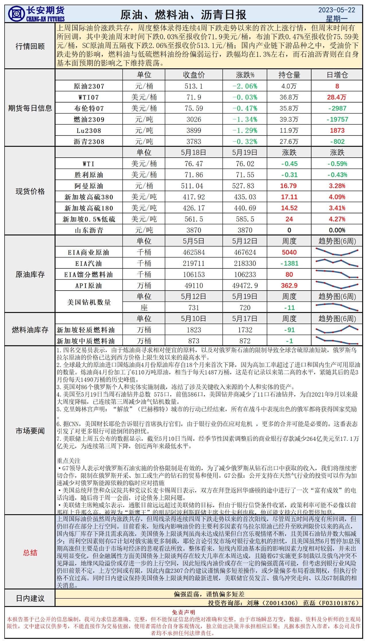 标题:长安期货5月22日原油早评:债务谈判预期乐观,油价或存一定上行空间