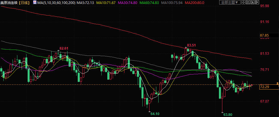 美原油交投于72.22美元/桶附近;油价周一上涨,因美国汽油期货攀升,且有预测称下半年石油需求将增加,同时伊拉克库尔德斯坦地区和OPEC+的供应在最近几周有所减少。