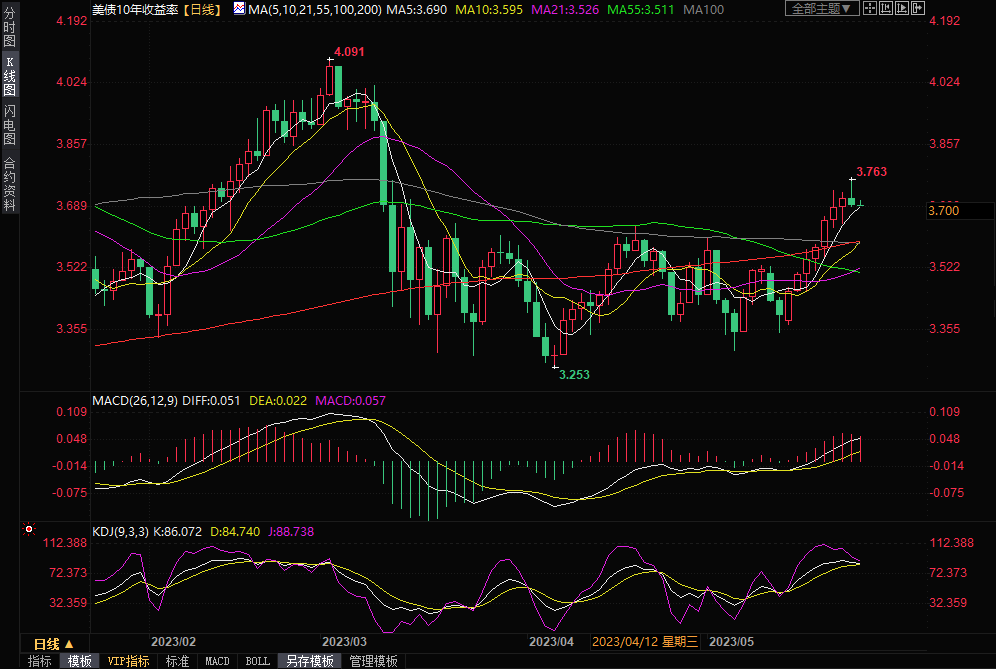 10年期美债收益率从两个月高点回落,债务上限谈判继续