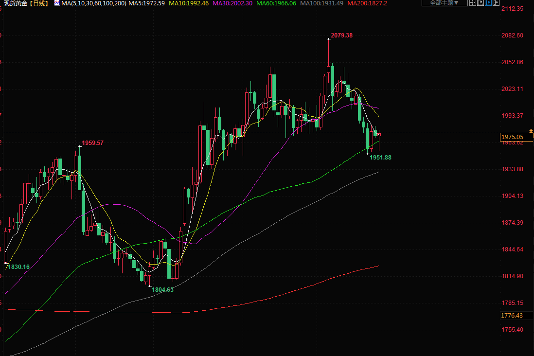 商品收盘情况:美国期金收于1974.50美元,下跌0.1%。