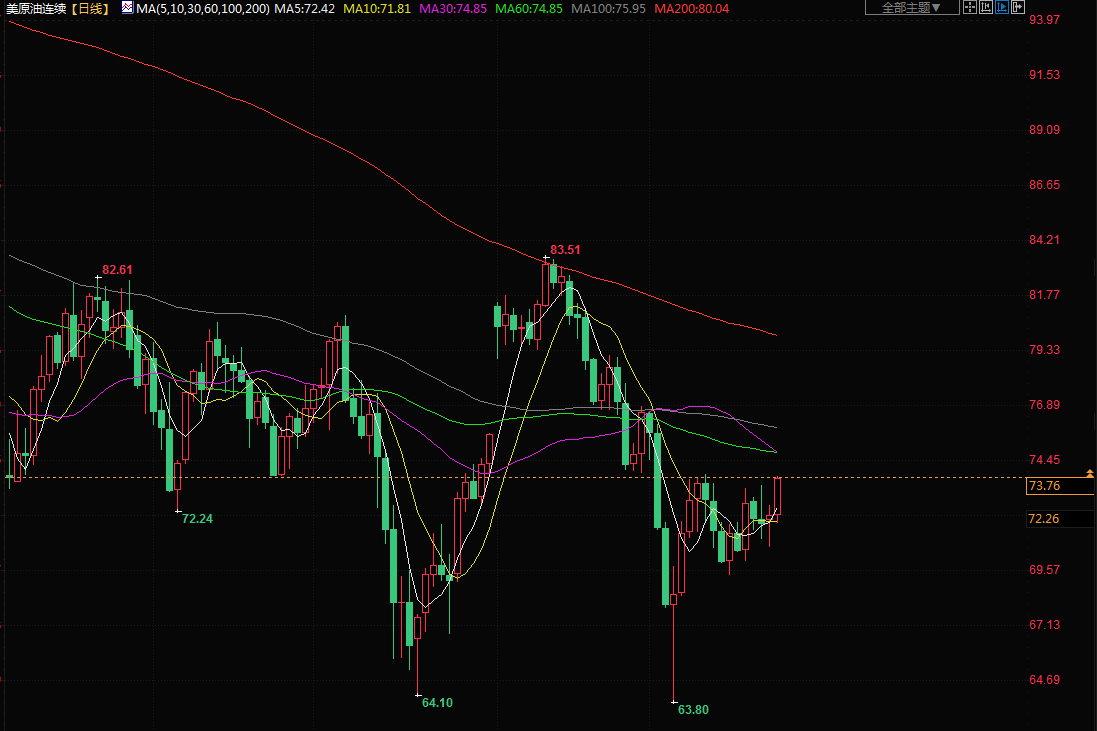 布伦特原油期货上涨1.1%,结算价报每桶76.84美元;美国原油期货结算价报每桶72.91美元,上涨1.2%。