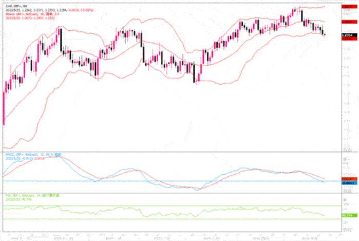 当日继续下滑0.2%,收盘于1.0750,盘中最低1.0748。随着近期美国经济数据显示出韧性并给美元带来优势,市场对美联储将很快开始降息的预期减弱。而且5月政策会议记录公布后,市场对美联储将在6月的下次会议上加息的押注略有上升。美联储官员5月“普遍同意”进一步加息的必要性“已经变得不太确定”,但其他官员警告说,鉴于通胀持续的风险,美联储有必要保持选择余地。根据芝商所的FedWatch工具,联邦基金利率期货走势显示,在6月14日为期两天的政策会议结束时,美联储加息的概率为35.3%。与之比照的是,欧元区的经济恢复之路似乎并不能如预期般顺当,因此其继续加息的预期也渐渐减弱。在利差上重掌优势的美元,开始再度施压非美货币,该压力预料将维持至6月议息会议揭晓之时。日线图上,欧元/美元已出现跌穿120日中长期均线的支撑,须警惕该货币对的继续下滑风险,下方的支撑渐次看1.0710、1.0662、1.0611。上方的意见还是之前指出的,只有重新企立回1.09之上,获才能有扭转颓势的希望。
