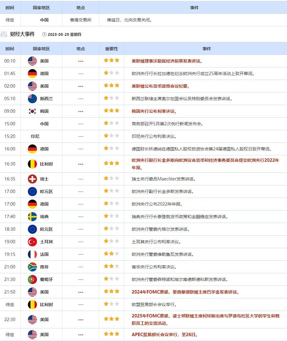 后续及时更新的财历数据请关注:【汇通财经5月25日财经日历】