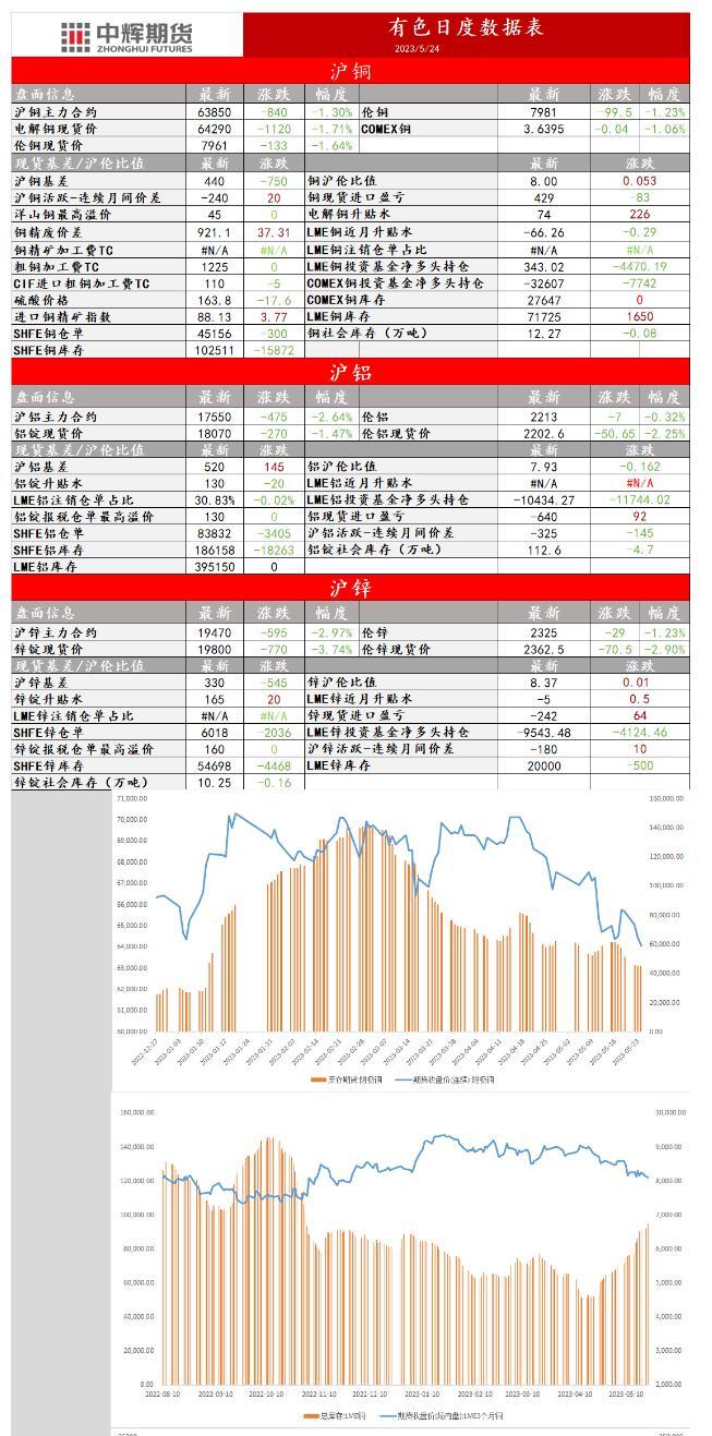 标题:中辉期货铜铝锌日报20230524:全球经济衰退预期走高,有色跌跌不休