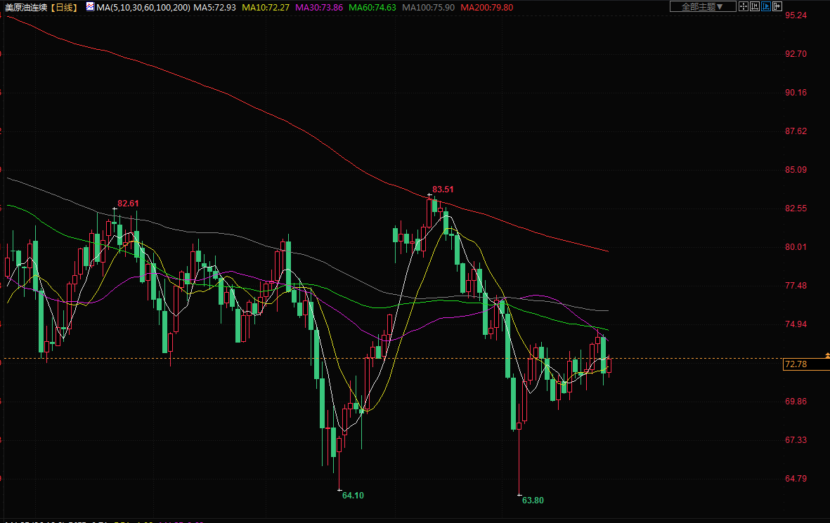 商品收盘情况:布伦特原油期货收高0.9%,报每桶76.95美元。美国原油期货收涨1.2%,报每桶72.67美元。美国期金基本持平于1944.30美元。