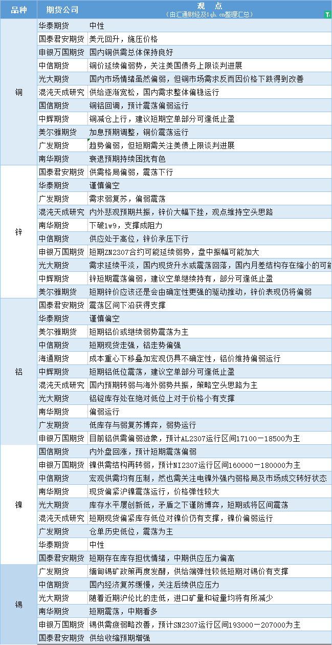 标题:期货公司观点汇总一张图:5月26日有色系(铜、锌、铝、镍、锡等)