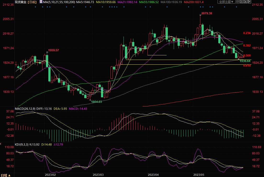 现货黄金窄幅震荡,目前交投于1943.70美元/盎司附近,美联储6月加息预期升温,美元守在近两个月高位附近,仍令金价承压于近两个月低位附近,虽然之前美国债务上限谈判初步达成协议,但美国众议院规则委员会周二将开会讨论债务上限议案,共和党强硬派公开反对美国债务上限协议,令市场担忧情绪有所回升,这给金价提供支撑。