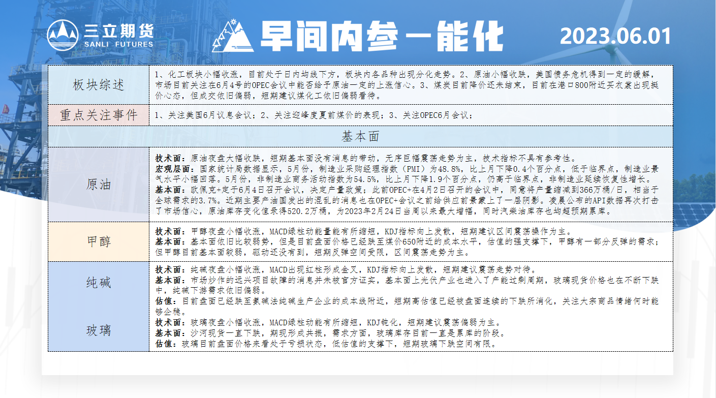 标题:三立期货6月1日早间内参——能化