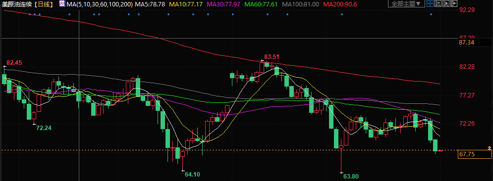美原油交投于67.69美元/桶附近;油价周三延续跌势,下挫近3%,盘中创近四周新低至67.02美元/桶,受美元走强和亚洲疲软数据引发的需求担忧所拖累,且美国3月原油产量升至三年来最高增加油价下行压力。