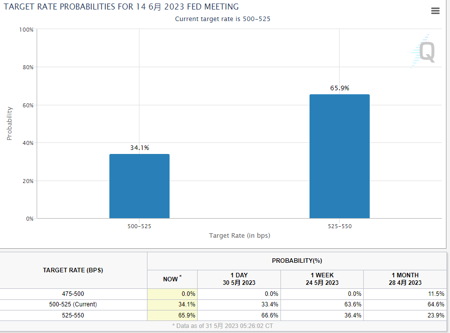 CME的“联储观察”工具最新数据显示,美联储在6月14日加息25个基点的可能性为66.4%,远超一周前的36.4%。市场也几乎排除了此前预期的美联储在今年下半年可能的降息。