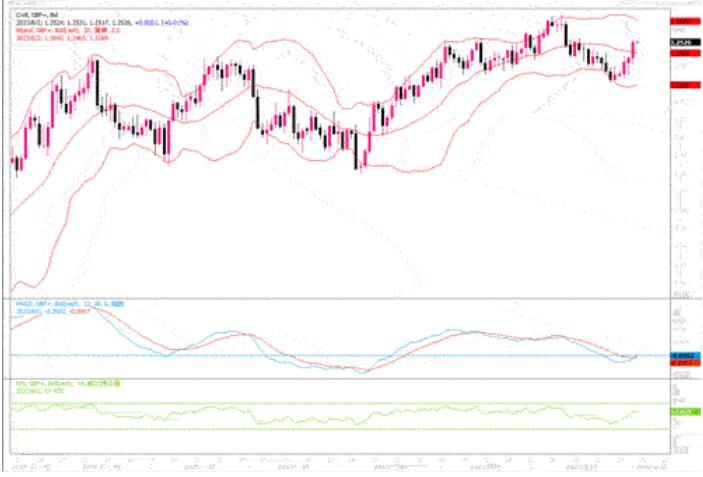 反弹走高的走向。目前日线图上,镑美汇价重新穿过布林带中轨且回到各短期均线上方,MACD似乎形成金叉,RSI穿过均衡线向上摆动,显示英镑购入盘较为积极。但日内有美国非农公布,须谨慎英镑高位获利回落的风险发生。