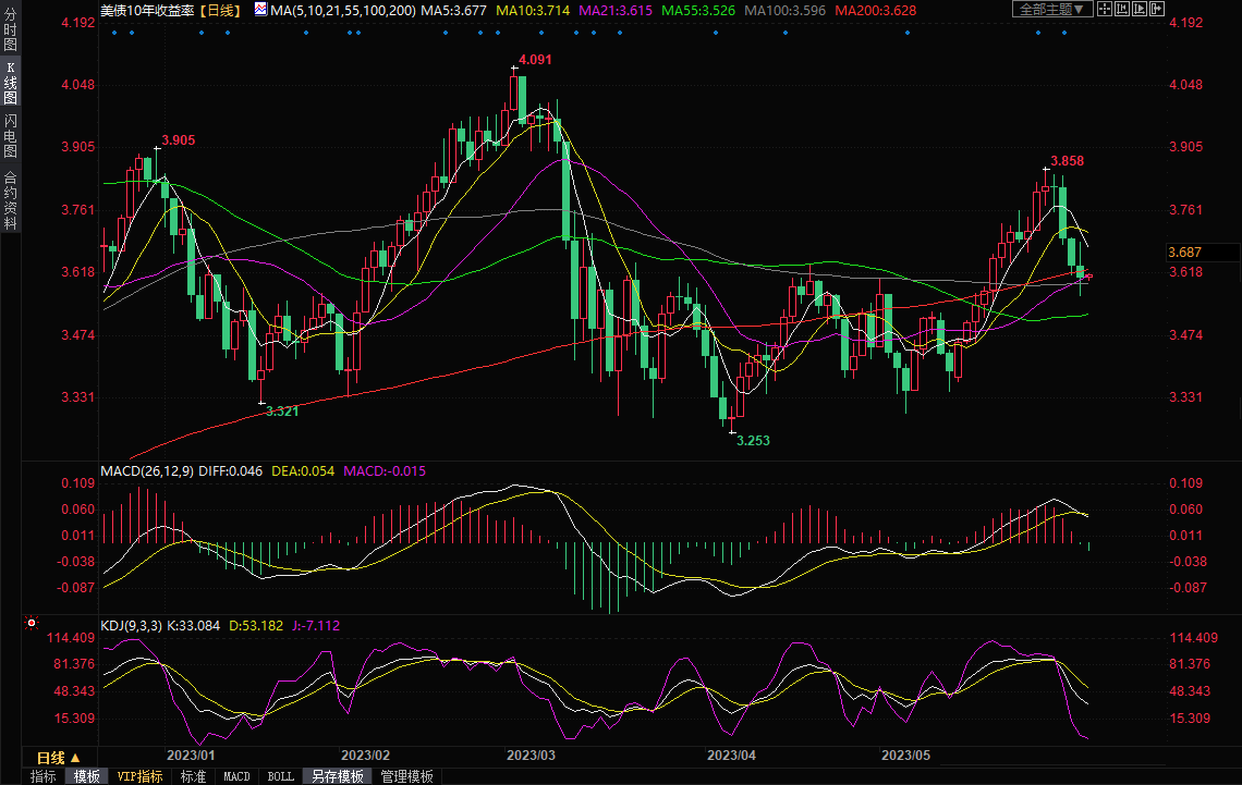美国10年期国债收益率周四下跌2.9个基点,报3.608%,盘中最低触及3.567%,为5月18日以来新低;30年期国债收益率周四下跌2.3个基点,至3.834%。
