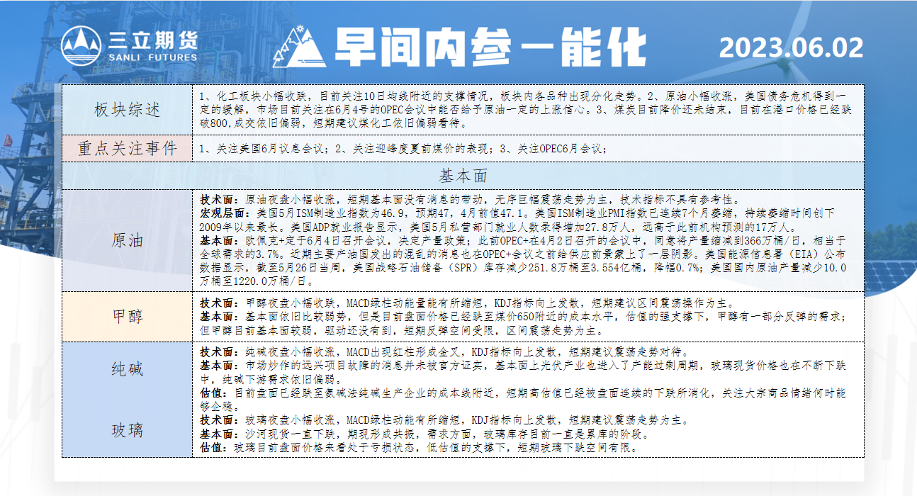 标题:三立期货6月2日早间内参——能化